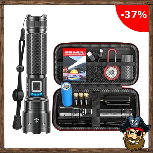 BUCASA Taschenlampe LED Aufladbar 1000000 Lumen, LED Taschenlampe Extrem Hell XHP70.2 Batteriebetrieben USB, Starke Taktische Taschenlampen, IP67 Wasserdicht 5 Modi Flashlight für P!irate-Deals Outdoor Notfälle