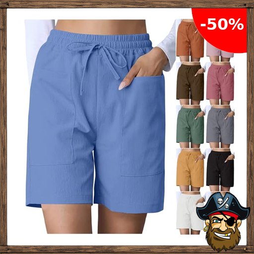 Funnyrap Kurze Sportshorts Pi:rate-Deals Damen Sporthose High Waist Shorts Musselin Bermuda Shorts Sommer Shorty mit Taschen und Kordelzug Freizeitshorts für Running Gym Fitness