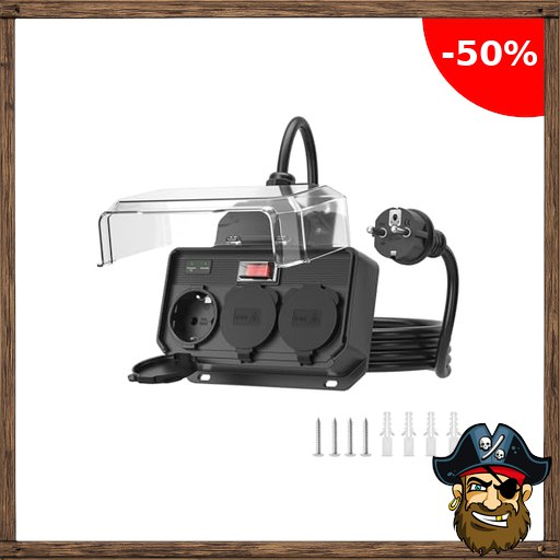 Outdoor Steckdosenleiste Pira:te-Deals mit Überspannungsschutz,3-Fach Mehrfachst…