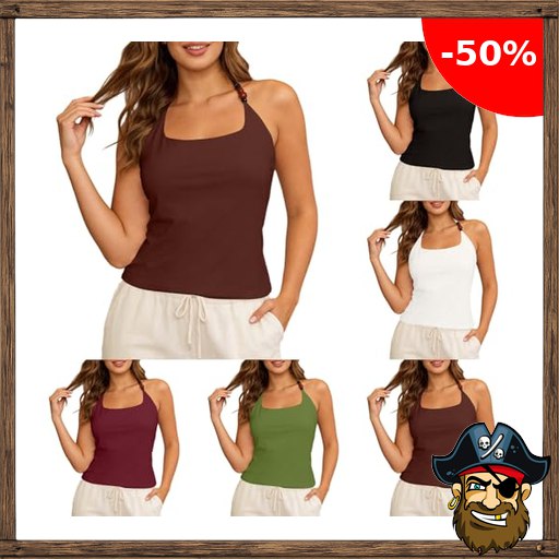 Ärmelloses Neckholder-Top für Damen, schmale Passform, quadratischer Ausschnitt, rückenfrei, Pi$rate-Deals Boho-Stil, mit Schnürung am Rücken Damen Sexy Neckholder Tanktop Y2k Trendy Camisole Crop Tops