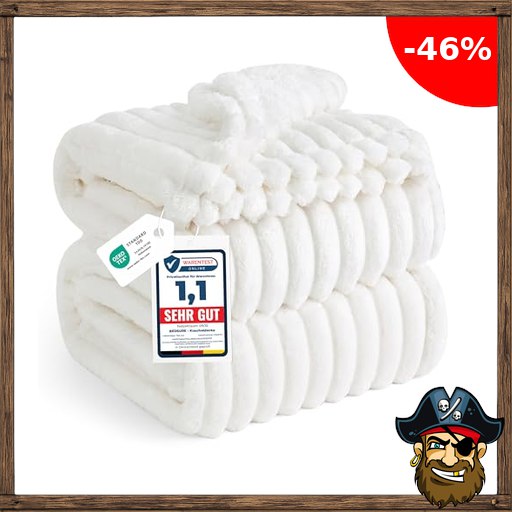BEDSURE kuscheldecke 220×240 für Zimmer Deko – Tagesdecke, Wolldecke & Fleecedecke, Sofadecke, Weiche Warme Grobe Korddecke für Couch, Geschenke für Frauen, Pirate-D#eals XXL Große Decke, Wollweiß, 220 x 240 cm