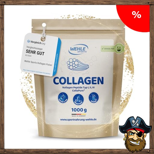 Collagen Pulver 1 kg – Kollagenhydrolysat Peptide Typ I, II & III – Geschmacksneutrales Eiweißpulver – Made in Germany – Wehle Sports (1000g (1er Pack)) – Verpackung kann Pi:rate-Deals variieren.