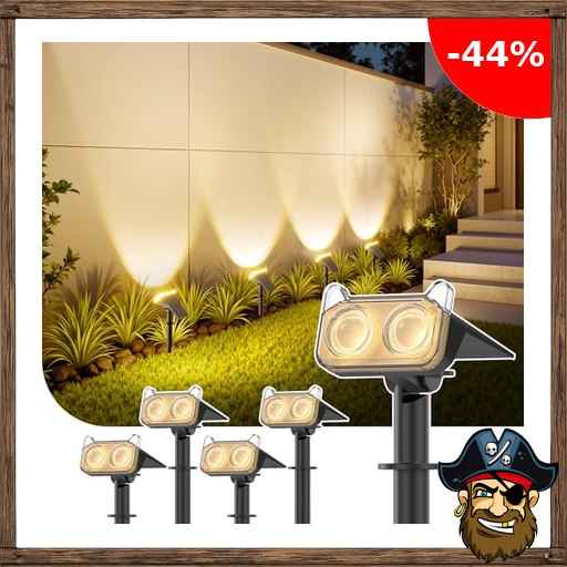 GEARLITE Solarlampen für Außen Garten, 3500K Warmweiß Solar Strahler 4 Stück, IP65 Wasserdicht Gartenleuchten, 2 Helligkeitsmodi Solarleuchten für Außen Garten Pirate-De:als Deko, Bäume, Hof, Weg, Garage
