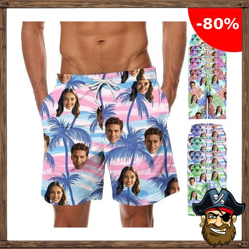 Generisch Personalisierte Badehose Herren Badeshorts mit Gesicht Pira~te-Deals F…