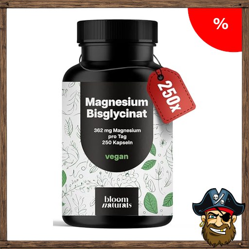Magnesium Bisglycinat Hochdosiert – 250 Kapseln – 362 mg Magnesium Glycinat pro Pirate-De#als Tag – Vegan & Produziert in Deutschland – Laborgeprüft – Verpackung kann variieren