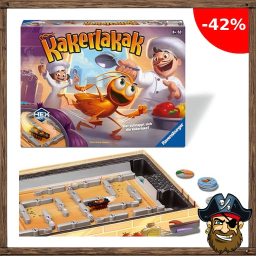 Ravensburger 20800 – Kakerlakak – Aktionsspiel mit elektronischer Kakerlake, Kinderspiele ab 5 Jahren, Pirate-Deal:s für 2-4 Personen, Familienspiele – Geburtstagsgeschenke