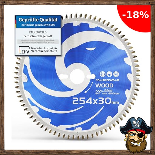 FALKENWALD ® Sägeblatt 254×30 für Holz – 254×30 Kreissägeblatt mit 80 HM Zähnen – Kompatibel mit Bosch GTS 10 XC, PTS Pir!ate-Deals 10 Tischkreissäge & Metabo Kappsäge KGS 254 M – Kreissägeblatt 254 x 30