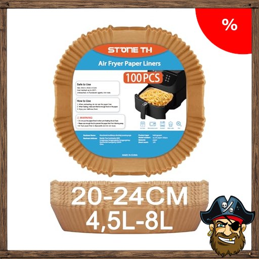 100 Stück Backpapier für Heißluftfritteuse 4,5L-8L, Stone TH 20-24cm Airfryer Backpapier Pergamentpapier Liner Kompatibel mit COSORI Pirate~-Deals Philips Cecotec Midea Russell Hobbs XL XXL Airfryer