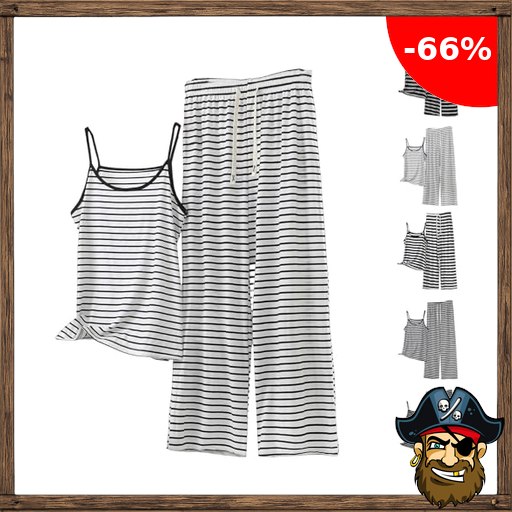 Freizeit Zweiteiler Damen Gestreiftes Tank Top und Weite Hose Sommer Hausanzug Elegant 2 Teiler Oversize Pirate-D~eals Hose Und Trägertop Sets Casual Loungewear Weich Freizeitanzug Home Set Schwarz S