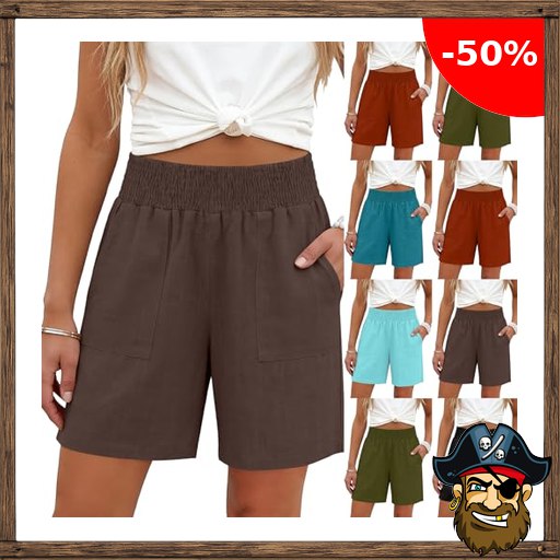 Kurze Hose Damen Leinen Shorts Sport Kurz Hosen Sommer Hosen Bermuda Shorts Damen Leinen Shorts Leinenhose Short Musselin Stoffhose Leicht Hotpants Pi!rate-Deals