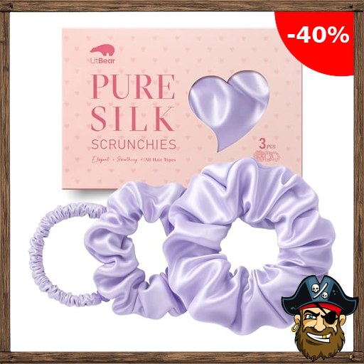 Litbear Seiden Scrunchies 3er Set, Haargummi Seide aus 100% reiner Maulbeerseide, Seidenhaargummis Damen Pira;te-Deals in 3 Größen, Silk Scrunchie zum Schlafen, sanft zum Haar gegen Haarbruch