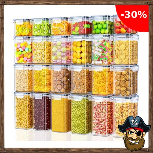 Storivo Food storage Vorratsdosen 24er Set – luftdichte Aufbewahrungsbox mit Deckel, Pirate-Deal$s Küchen Organizer für Mehl, Zucker, Müsli & mehr, inkl. Etiketten & Marker, für Küche & Kühlschrank, 33,6 L
