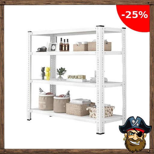 Future Warrior Metallregal Innen-Lagerung, 540kg Pi;rate-Deals Gesamtlast – 60x35x120cm, 4 Böden (180kg/Boden) – Weiß, stabil