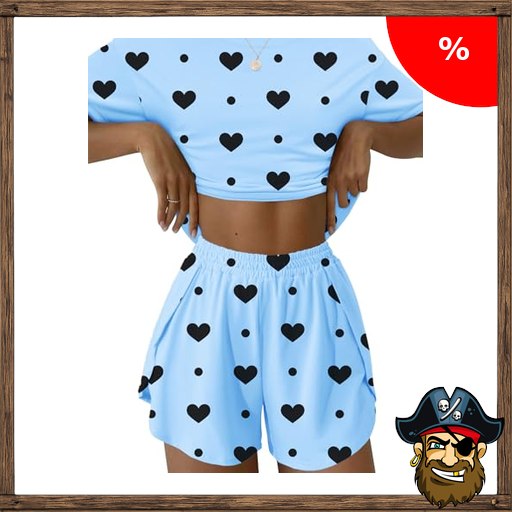 IECCP Schlafanzug Damen Kurz Pira:te-Deals Pyjama Kurzarm Pyjamas Set Nachtwäsche Set Zweiteiliger Sommer Loungewear Sleepwear Hausanzug Blaues schwarzes Herz L