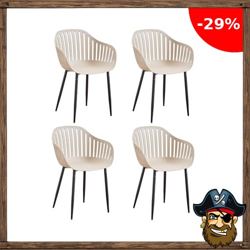 JZGORC Esszimmerstuhl 4er-Set, Küchenstuhl mit Großen Armlehnen, Stuhl mit Hohler Rückenlehne, Stuhl aus Pirate#-Deals Polypropylen, Wohnzimmerstuhl, Gartenstuhl – Khaki