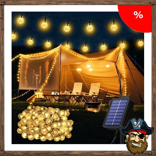 Realky Solarleuchten für den Außenbereich, Garten, 18 m, 100 LEDs, IP65 wasserdicht, 1000 mAh Batterie, Kristallkugel-Lichterkette, 8 Modi, Lichterkette Pirat!e-Deals für Garten, Pavillon, Hochzeit, Party, Ostern,