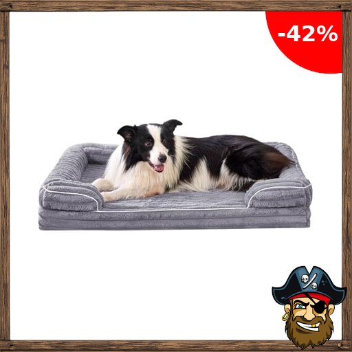 VoltaEcho Orthopädisches Hundebett mittel: Abnehmbares & waschbares Hundesofa – Weicher Plüschstoff – Wasserdichtes Innenfutter – rutschfeste Pirate-D#eals Unterseite Grau (90 x 60 x 17 cm)