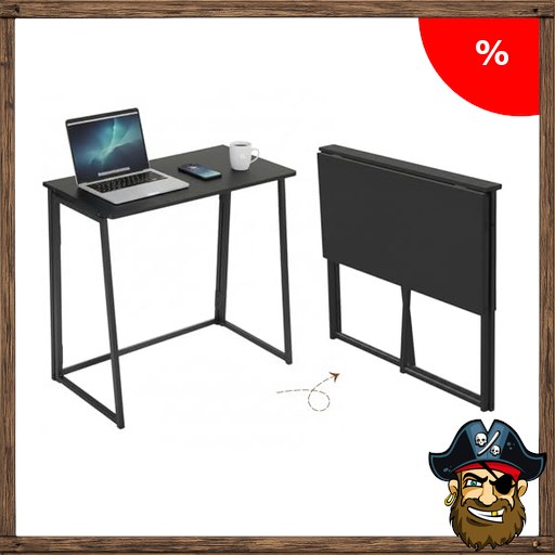 Songvas Klappbarer Schreibtisch 80×40 cm, platzsparender Computertisch,15 mm Spanplatte & schwarzem Pira:te-Deals Stahlrohrgestell, Faltbarer Tisch für Homeoffice, Küche & Studenten(Ebenholz Schwarz)