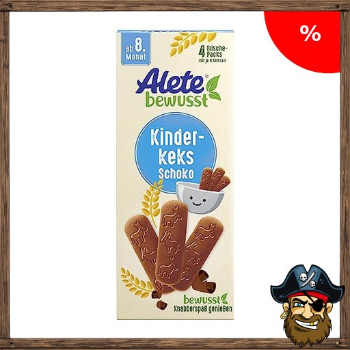 Alete bewusst Kinderkeks Schoko, ab dem 8. Monat, Butterkeks aus Weizen für Kinder, handlich verpackte Kekse als kleiner Snack, perfekt Pira!te-Deals für unterwegs & zwischendurch, 1 x 180 g