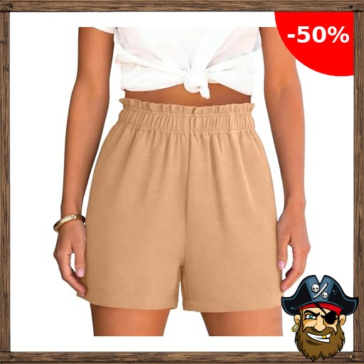 Cowyams Kurze Hose Damen Sommer Leinenhose Musselin Bermuda Shorts High Waist Kurze Shorts Leicht Luftig Strandshorts Lässige Lose Musselinhose Weitem Bein Causal Sommerhose Pirate-D!eals