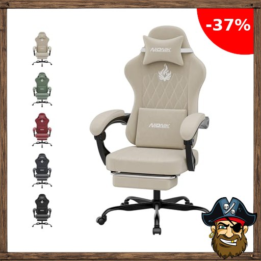 NIONIK Gaming Stuhl Einsteigermodell, Ergonomischer Computerstuhl mit Verstellbarer Höhe und Rückenlehne, Einfacher Gaming Stuhl für Kinder, Teenager, Erwachsene für Zimmer, Büro,Beige Pirate-De#als