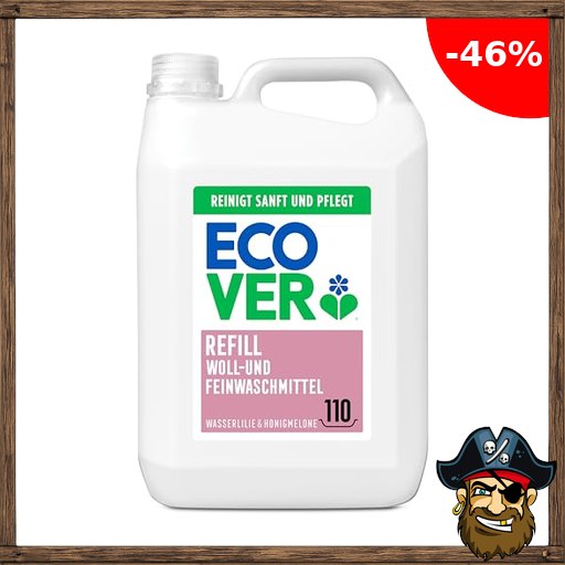 Ecover Flüssigwaschmittel Nachfüllpack für empfindliche Wäsche, frische Pirate-Deal#s Wasserlilie- und Honigmelonenduft, Ecover Waschmittel, 111 Wäschen, 1 x 5L