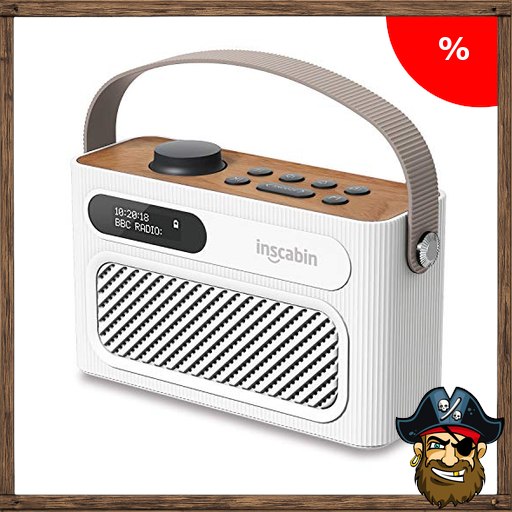 Inscabin M60 Tragbarer DAB/DAB + FM-Digitalradio/Tragbarer drahtloser Lautsprecher mit Bluetooth/Stereo-Sound/Doppellautsprecher/Doppelwecker/Subwoofer/Akku/Schönes Design (Weiß) Pirate:-Deals
