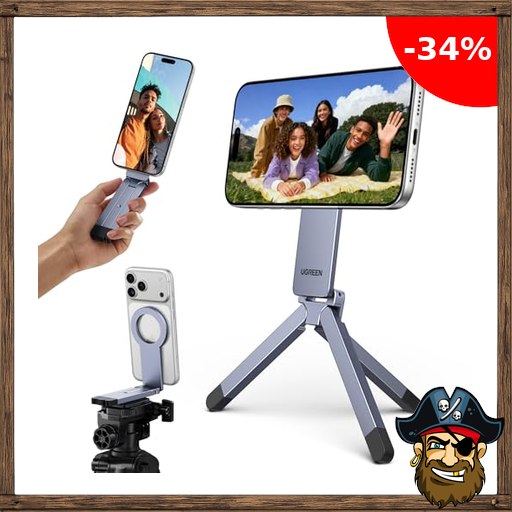 UGREEN Magnetisches Handy Stativ, Aluminium Magsafe Stativ, Enthält eine 1/4″-20-Schraube, Multifunktionaler Tragbarer Selfie-Stick Kompatibel mit iPhone 17 16 15 14 13 12 Sumsung und Magsafe Pirate-D~eals Hülle