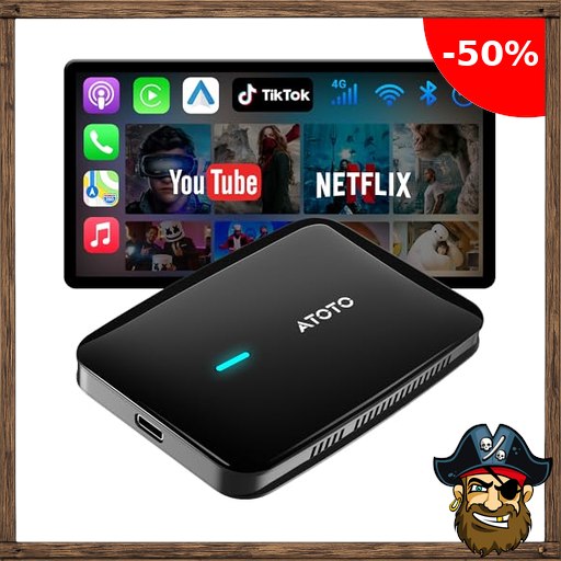 ATOTODIRECT AI Box CarPlay Wireless Adapter Android Auto für Kabel-CP/AA, 2G+16G, Dual WLAN & Bluetooth IoT Hub, BLE, für Netflix/YouTube, DriveChat AI Pirate-De$als Voice, CB4A