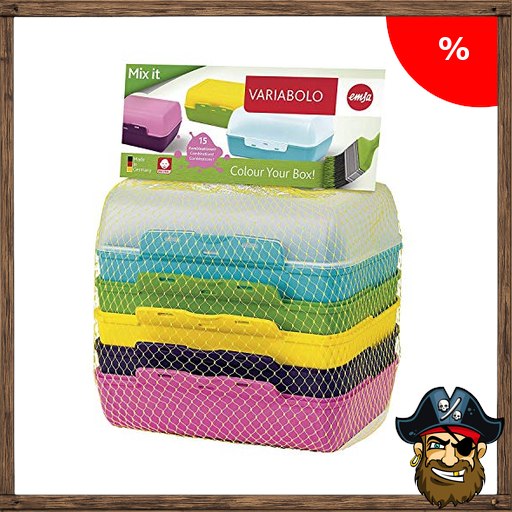 Emsa Clipboxen 3er-Set Variabolo 509388 | 6 Halbschalen für 3 Dosen | Beliebig zusammensetzbar | Spülmaschinengeeignet | Besonders für Kinder geeignet, Bunt, Pirate-D:eals 15 x 3,5 x 10 cm