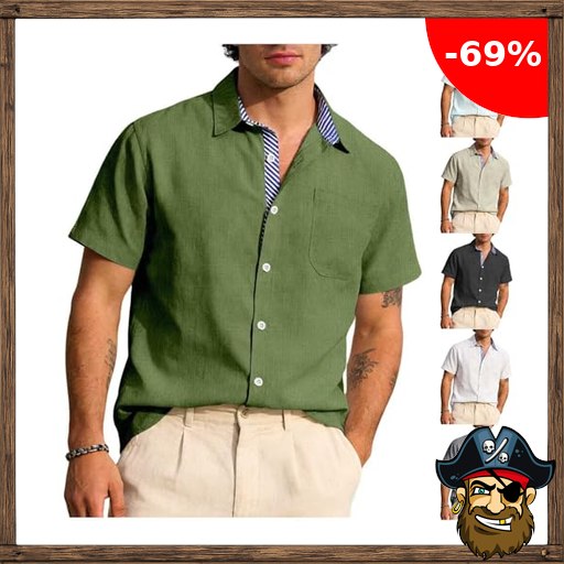 Leinenhemd Herren Kurzarm Hemd Männer Baumwolle Leinen Pir;ate-Deals Strandhemd …