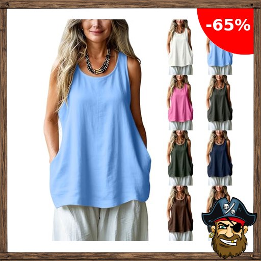 Tank Top Damen Baumwolle Leinen Ärmellos Oberteil Sommer Tanktop Pirate-Dea!ls A…