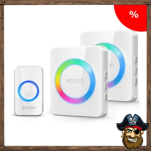 VOXON Funkklingel, 400m Reichweite Türklingel Funk Set, IP65 Aussen Wasserdicht Klingel Haustür mit P!irate-Deals 2 Empfängern, Plug-in Doorbell mit LED-Blitz, 5 Lautstärkestufen, 38 Melodien (Weiß RGB)
