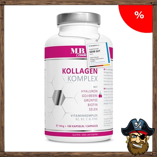 Kollagen Hyaluronsäure Pi:rate-Deals Komplex – 1000 mg mit dem Superfood Gojibeere und Grüntee – 180 Kapseln vom Weiderind. Premium Kollagen Hydrolysat mit Biotin, Selen, Zink, C, B2 und B3 – MB Cosmetics