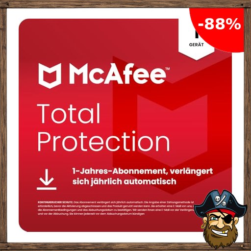 McAfee Total Protection 2026 (1 Gerät) | Virenschutz, VPN, Betrugsschutz, Sicherheitssoftware, P:irate-Deals Identitätsüberwachung | 1-Jahres-Abonnement mit automatischer Verlängerung | Download