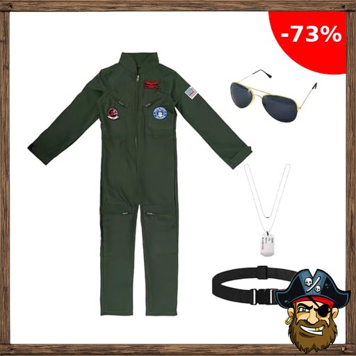 bechoanigel Pilot Kostüm Kinder, Militärgrün Pilotenkostüm für Kinder, Piloten Overall Uniform mit Sonnenbrille, Pi;rate-Deals Halskette und Gürtel, für Fotografie Halloween Fasching Karneval Kostüm Cosplay, L