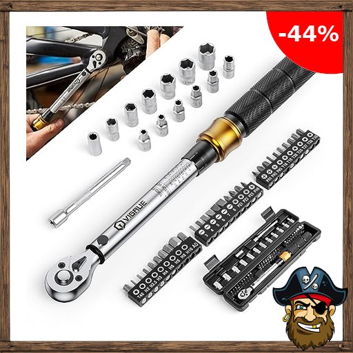 Drehmomentschlüssel Fahrrad 5-25 Nm, VIGRUE Drehmomentschlüssel 1/4 Zoll, ±4% Genauigkeit, P!irate-Deals Torque Wrench Set mit Ratsche, Verlängerungsstange, Universalgelenk, Zündkerzenhülse, Bits für Motorrad, Auto
