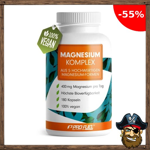 Magnesium Komplex 180 Kapseln, 400 mg elementares Pirat;e-Deals Magnesium pro Ta…