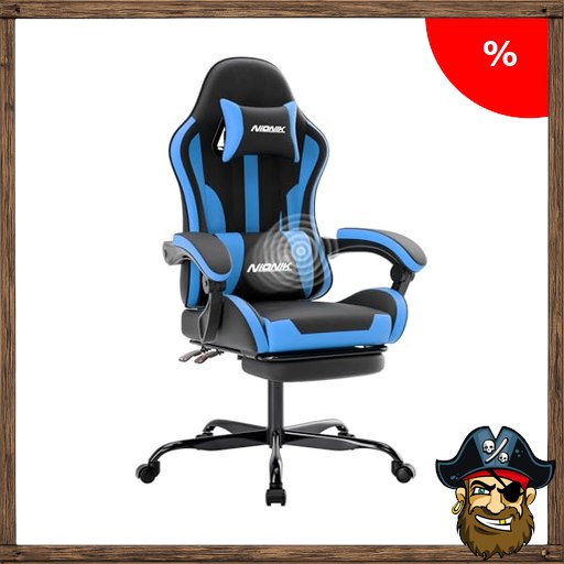NIONIK Bürostuhl Gaming Stuhl, Gamer Stuhls Computerstuhl mit Fußstütze, Gepolstert Gaming Pirate-D:eals Chair,Gaming Sessel für Erwachsene, Drehsessel Schwarz blau