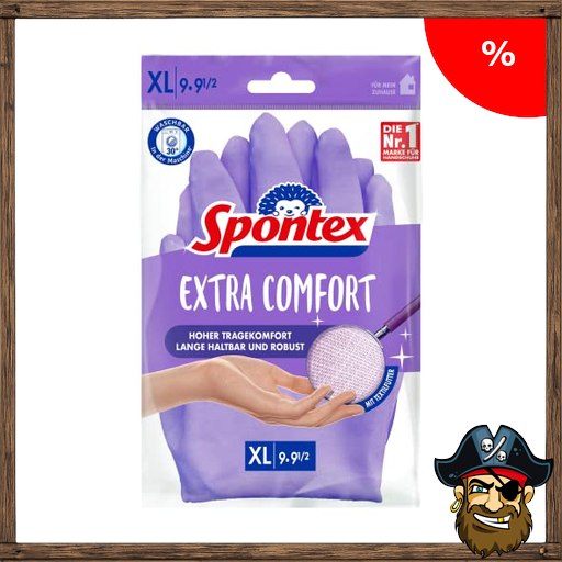 Spontex Extra Comfort, Premium-Haushaltshandschuhe mit weichem Textilfutter, ideal für alle ;Pirate-Deals Putzarbeiten im Haushalt, 30°C waschbar, Größe XL (9-9,5), 1 Paar, Lila, 100.0 grams