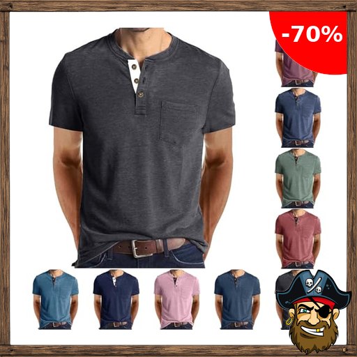Henley Shirt Pirate-Dea#ls Herren Kurzarm Tshirt Sommer Basic T-Shirt Slim Fit R…