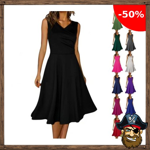 Sommerkleider Pirate-Deal$s Damen Ärmellose Lässig V-Ausschnitt Blumendruck A-Linie Kleid Midikleid Partykleid Freizeitkleid Strandkleider