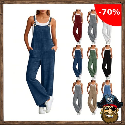 KODMNSW Latzhose Damen Sommer Verstellbare Overall Elegant Jumpsuit Breites Bein Trägerhose Pirate-!Deals Baggy Strampler Ärmellos Hosenanzug mit Tasche Baumwoll Leinen Optik Playsuit Blau L