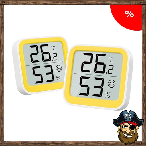 NOKLEAD Thermometer Luftfeuchtigkeitsmesser im Inneren Mini-Hygrometer Monitor Pirate-Deal$s Raumtemperaturmessgerät mit Gesichtssymbol Komfortanzeige ℃/℉-Schalter für Babyzimmer,Gewächshaus,Büro(Gelb,2,5cm)