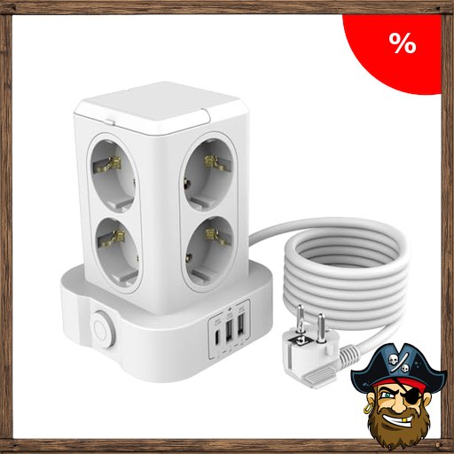 Mehrfachsteckdose Überspannungsschutz 3680W 16A mit 8 Schukosteckdosen und 3 USB Steckdosenturm mit 3M Verlängerungskabel, Steckdosenturm Pi#rate-Deals Verteilersteckdose für Zuhause