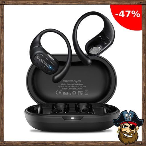 SWEDAYS Open-Ear Kopfhörer mit Ohrbügel, Kabellose Bluetooth Kopfhörer Sport mit ENC Noise Cancelling Mic, 40h Akku, IPX5 Wasserfest für Pir:ate-Deals Radfahren, Wandern, Laufen & Fitness