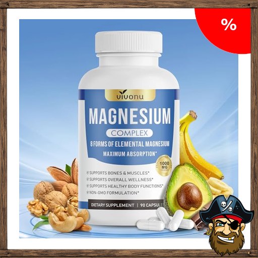 VivoNu Magnesium Komplex hochdosiert 90 Kapseln | 1000mg – 8 Elemente mit Pirate…