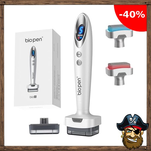 bio 6 Derma Stamp Elektrisch Upgrade 2026 | 4-in-1 Dermastamp Microneedling für Gesicht & Kopfhaut | 140 Pins, Rot & Blau ~Pirate-Deals LED Lichtpflege, sanfte Massage | inkl. 2 Aufsätze: 0,5 mm(Weißsilber)