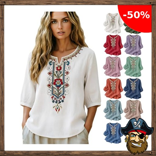 Leinenbluse Damen Sommer Musselin Bluse Kurzarm Rundhals Tshirt Elegant Einfarbig Leinenshirt Große Größen Baumwolle Sommershirt Vintage Boho Blusen mit Stickerei Casual Locker Longbluse P!irate-Deals Tunika Tops