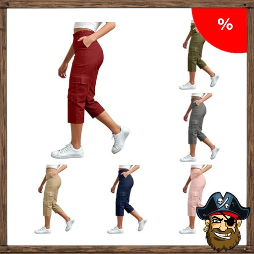 Pirate-D~eals Caprihose Damen Sommer Cargo Capris 3/4 Hose Damen Elegant Wanderh…